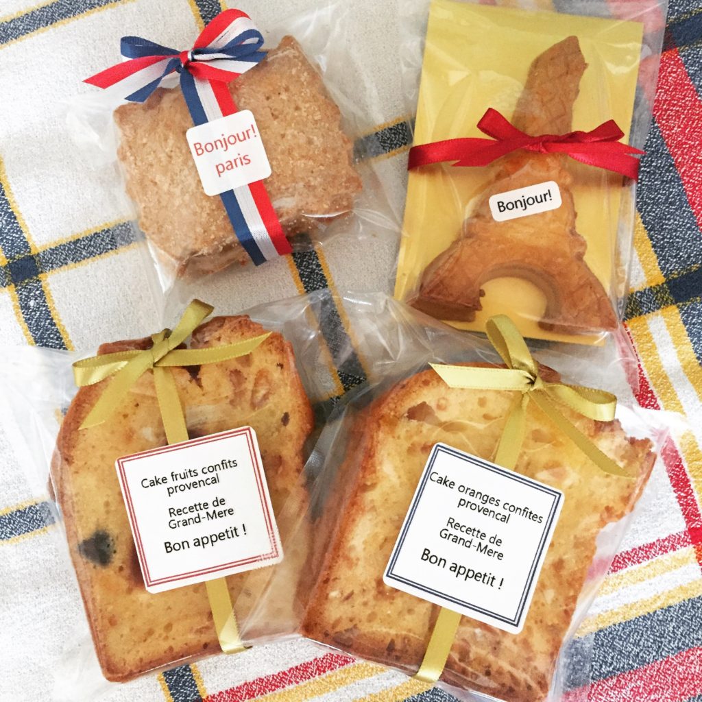 フランスのおばあちゃんのレシピで作ったパウンドケーキやエッフェル塔サブレなど。(数に限りがあるものもございます。)