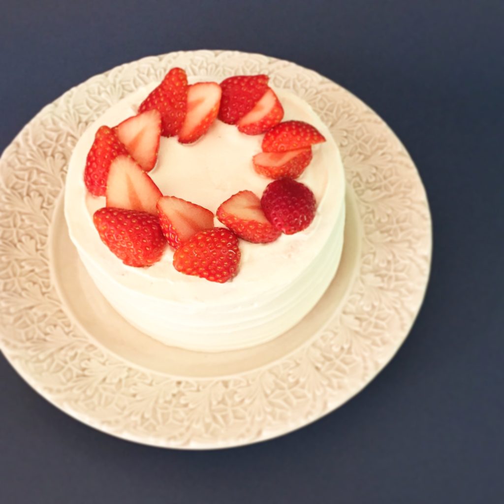 ふわふわのスポンジ生地にたっぷりのシロップを染み込ませ、真っ白な生クリームでデコレーションしました。きび砂糖を使用して甘味も優しく仕上げております。