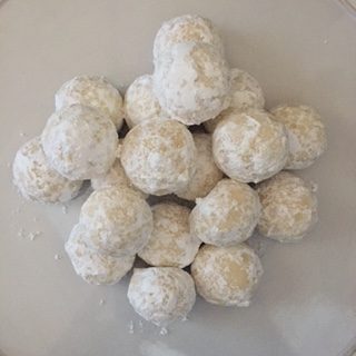ブールドネージュは生地の作り方のデモンストレーションの後、皆さんと一緒にコロコロ丸め焼き上がったら真っ白な粉砂糖で仕上げます。
